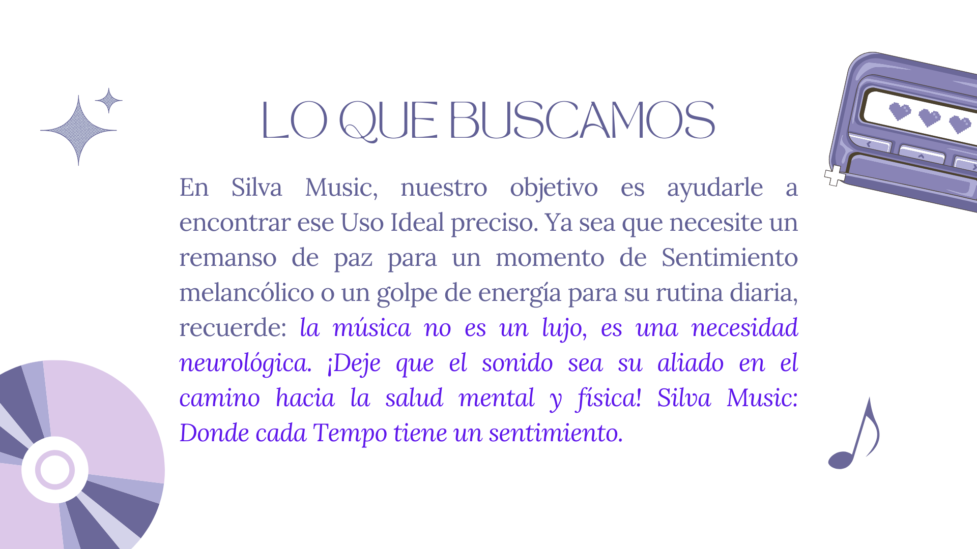 Silva-Music es un proyecto musical independiente liderado por Nelson Silva, que desde hace varios años se ha dedicado a componer letras originales, consolidando una trayectoria llena de creatividad y pasión. Nuestro objetivo es ofrecer música versátil, desde la música popular colombiana hasta géneros urbanos como reggaetón, brindando a nuestro público canciones que emocionen y cuenten historias auténticas. Cada producción refleja calidad, identidad y dedicación, y anuncia un futuro lleno de lanzamientos que invitan a disfrutar y gozar de contenido fresco y genuino. Más que un proyecto, Silva-Music es una marca que representa autenticidad, innovación y amor por la música en todas sus formas.